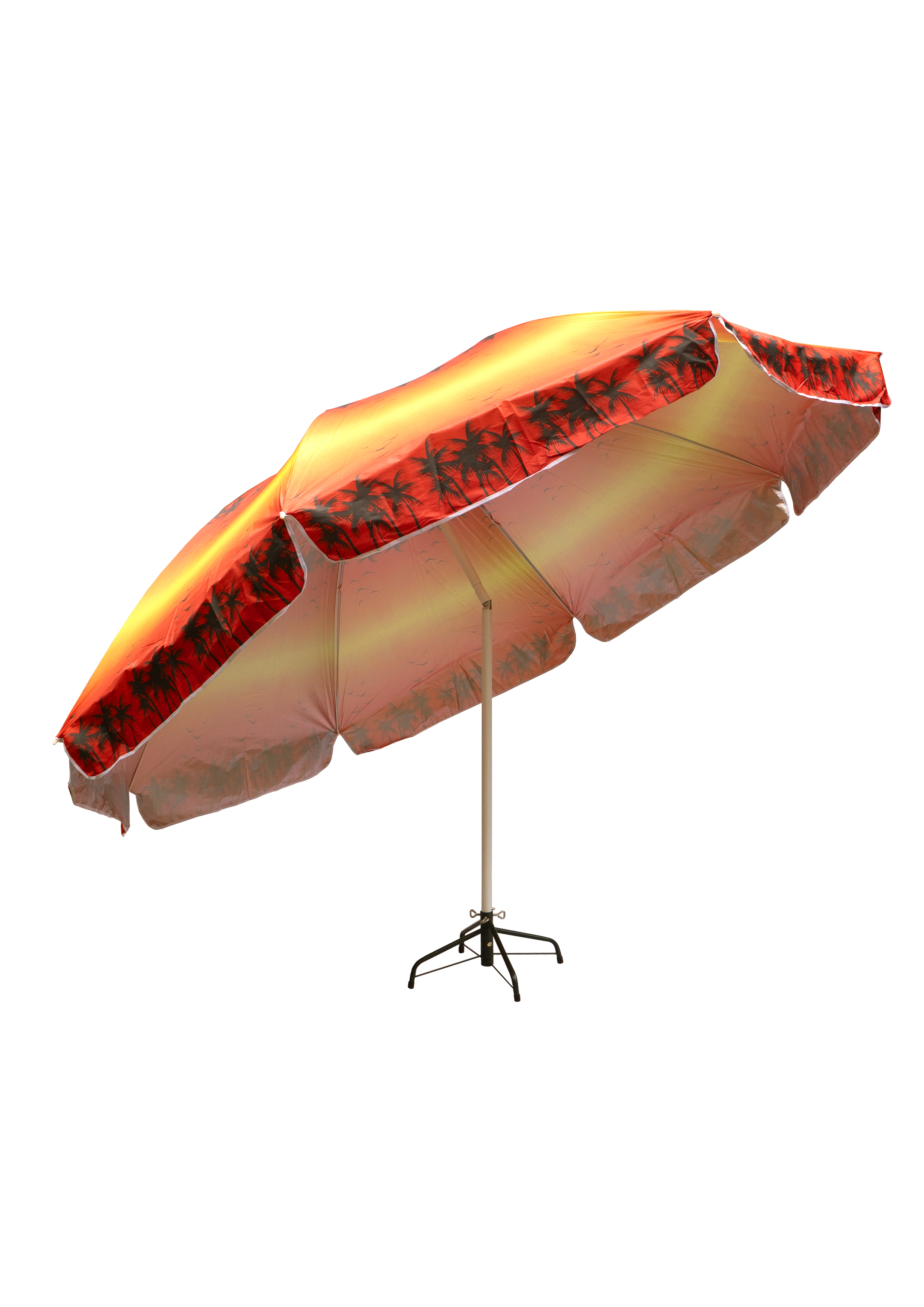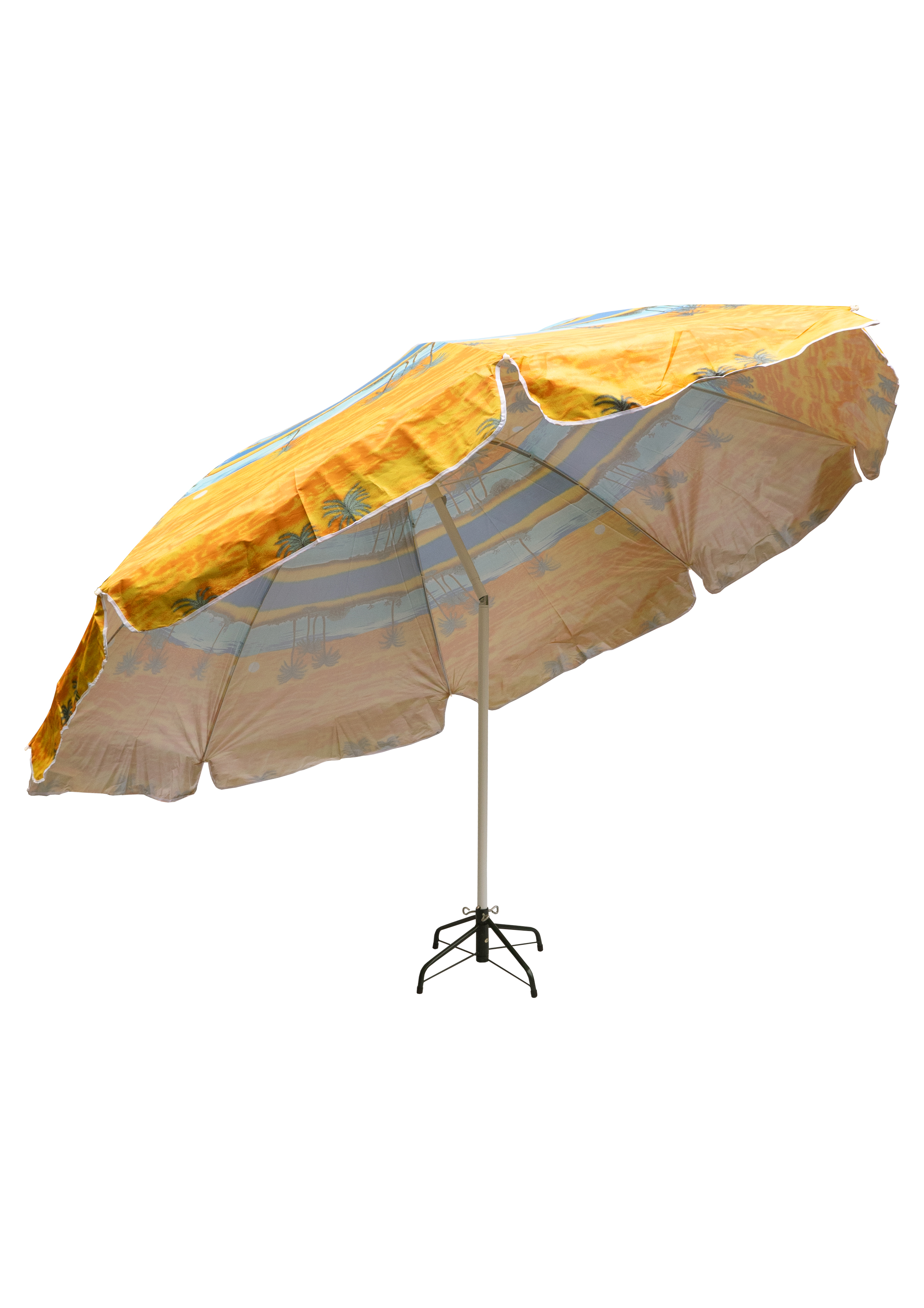 Зонт пляжный фольгированный (150 см в диаметре) 12шт/упак - надежное укрытие от солнечных лучей. Качественный металлический карскас с наклоном. Купол пляжного зонта выполнен из водонепроницаемого полиэстера, с внутренней стороны купол фольгирован, поэтому солнечные лучи отражаются. В раскрытом виде размер купола 1,5 метра. В ассортименте 4 расцветки